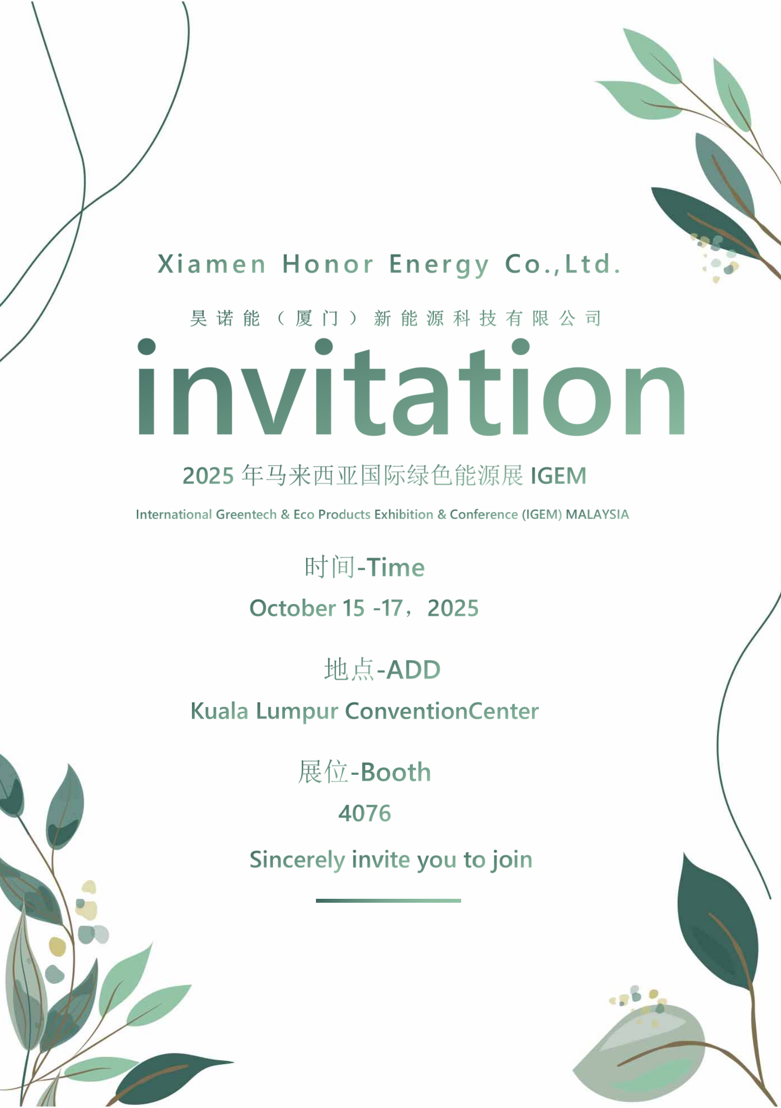 మేముసంతోషిస్తున్నారు2025 మలేషియా ఇంటర్నేషనల్ గ్రీన్ ఎనర్జీ ఎగ్జిబిషన్ (IGEM) కోసం మీకు మా అధికారిక ఆహ్వానాన్ని ప్రకటించడానికి.