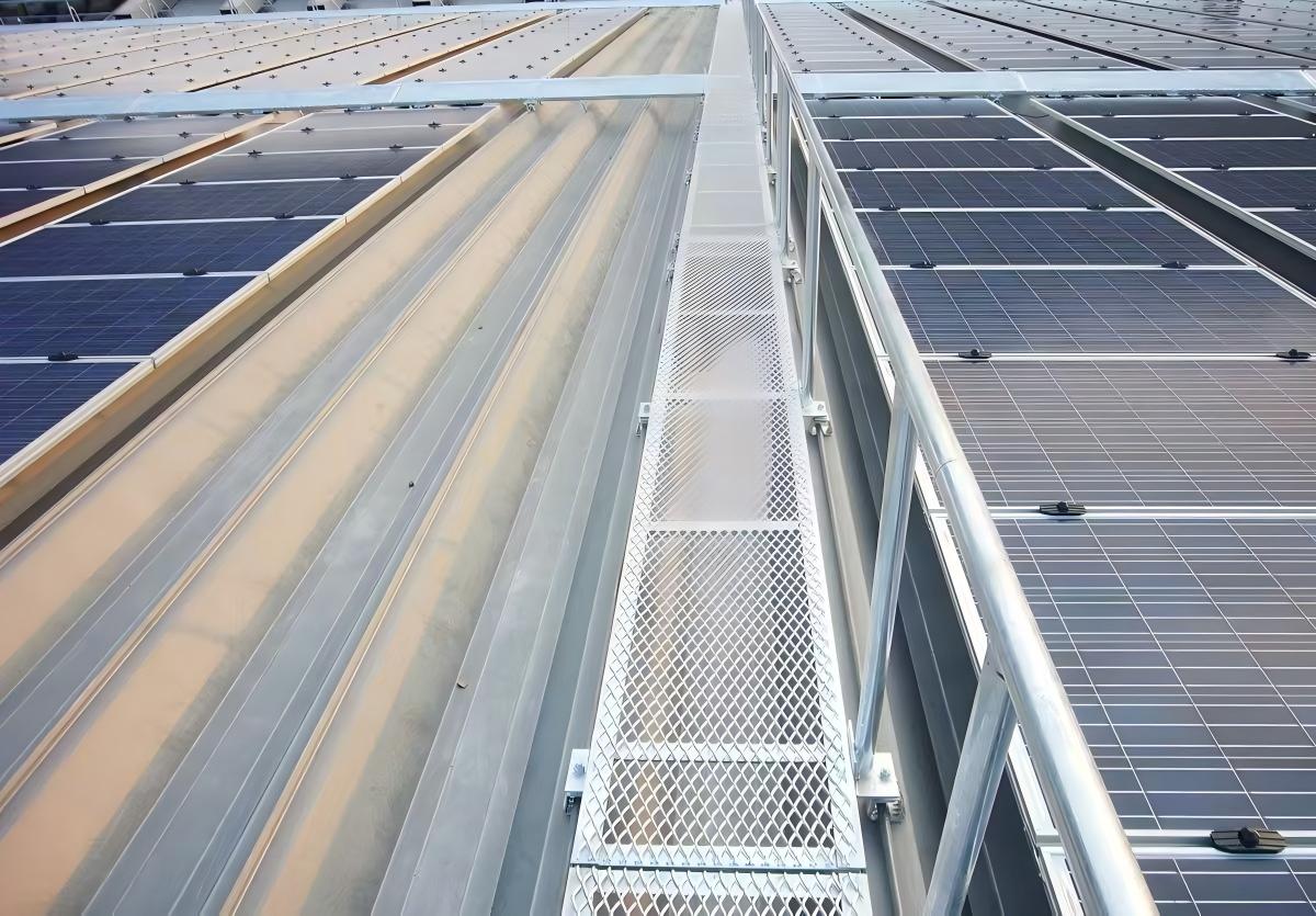 సౌర నడక మార్గం ఇది చాలా సాధారణంగా ఉపయోగించే సౌర భాగం, సాధారణంగా సౌర వ్యవస్థ యొక్క మెరుగైన నిర్వహణను సులభతరం చేయడానికి వ్యవస్థాపించబడింది. ఇది వాటర్ప్రూఫ్ లేయర్కు నష్టం జరగకుండా లేదా సిబ్బంది తరచుగా కదలికల వల్ల పైకప్పు లీక్లకు నష్టం జరగకుండా నిరోధించడానికి ప్రత్యేక నడక మార్గాల ద్వారా లోడ్లను పంపిణీ చేస్తుంది.